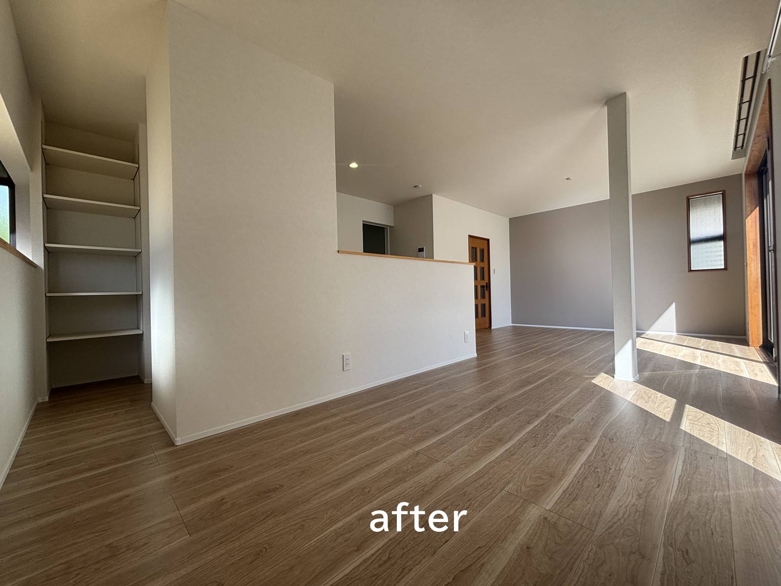 LDKの2面をアクセントクロスに貼替え。