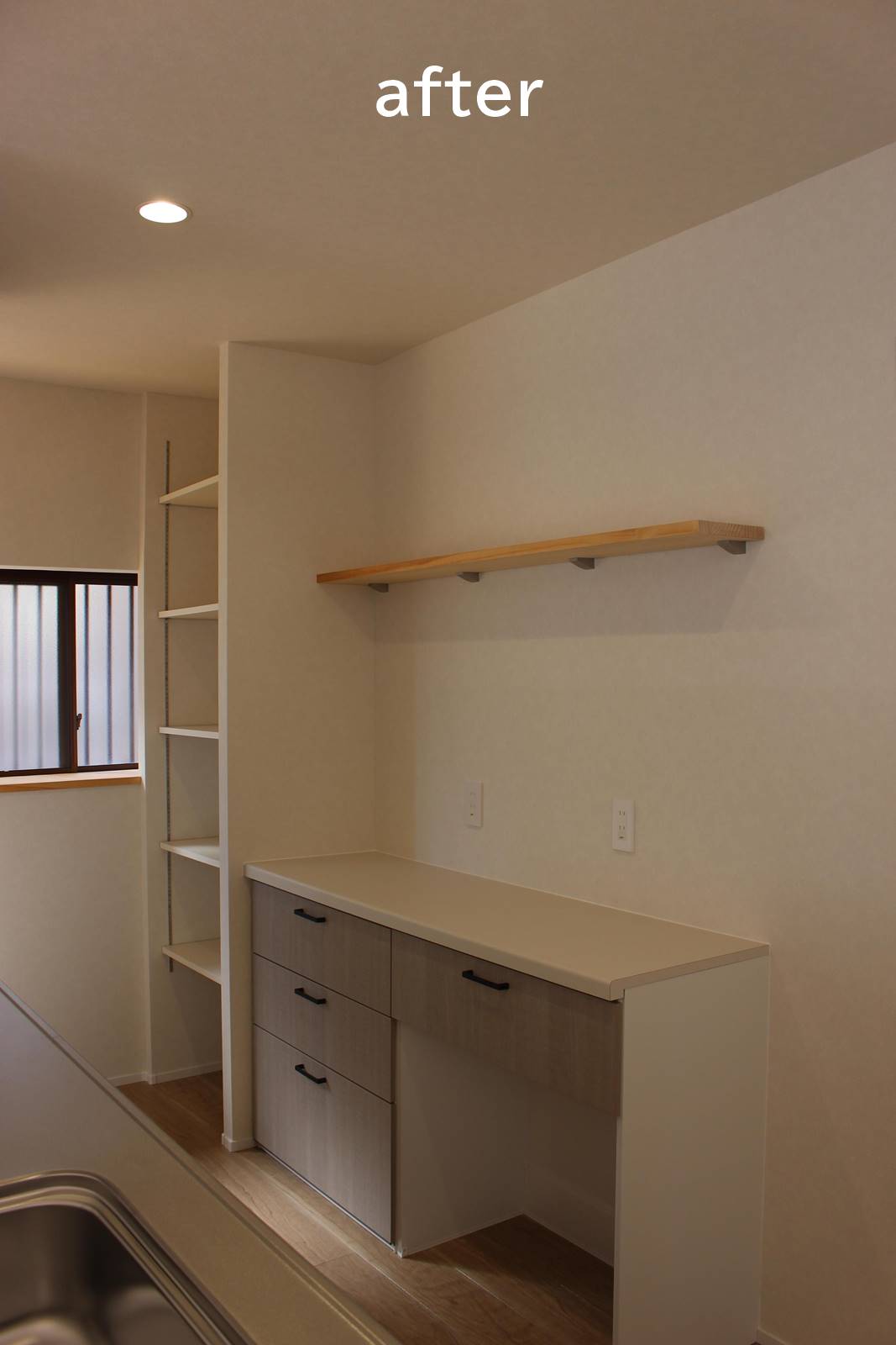 扉付きの収納部分は、可動棚付きのオープン収納に。