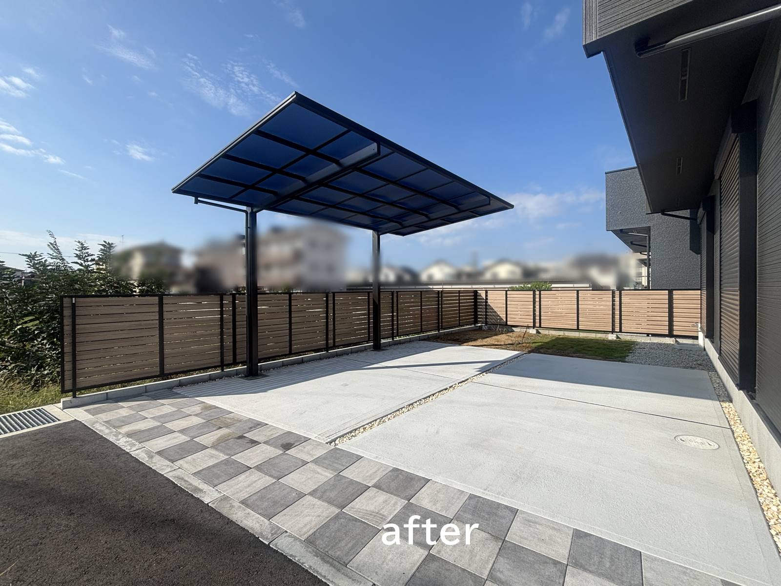 外構工事は、目隠しフェンスとカーポートを